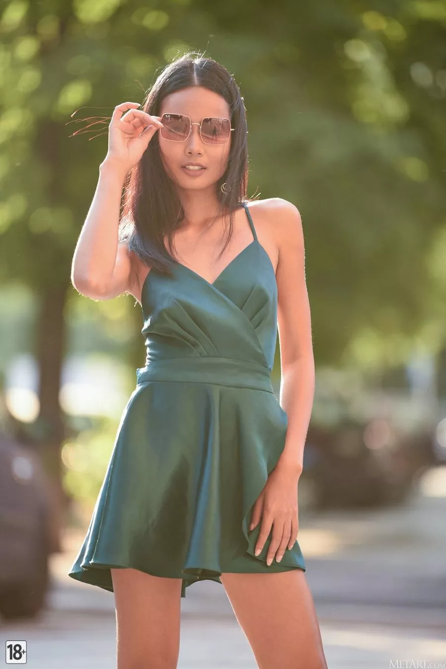Фото нежной азиатки в нежных тонах, с узкими плечами и стройной талией, медленно расстёгивает одежду. Мускулистая, длинноногая особа в интимной обстановке, соблазнительно позирует, демонстрируя свою узкую, бритую область и чётко видимый анус с лёгкой текстурой.