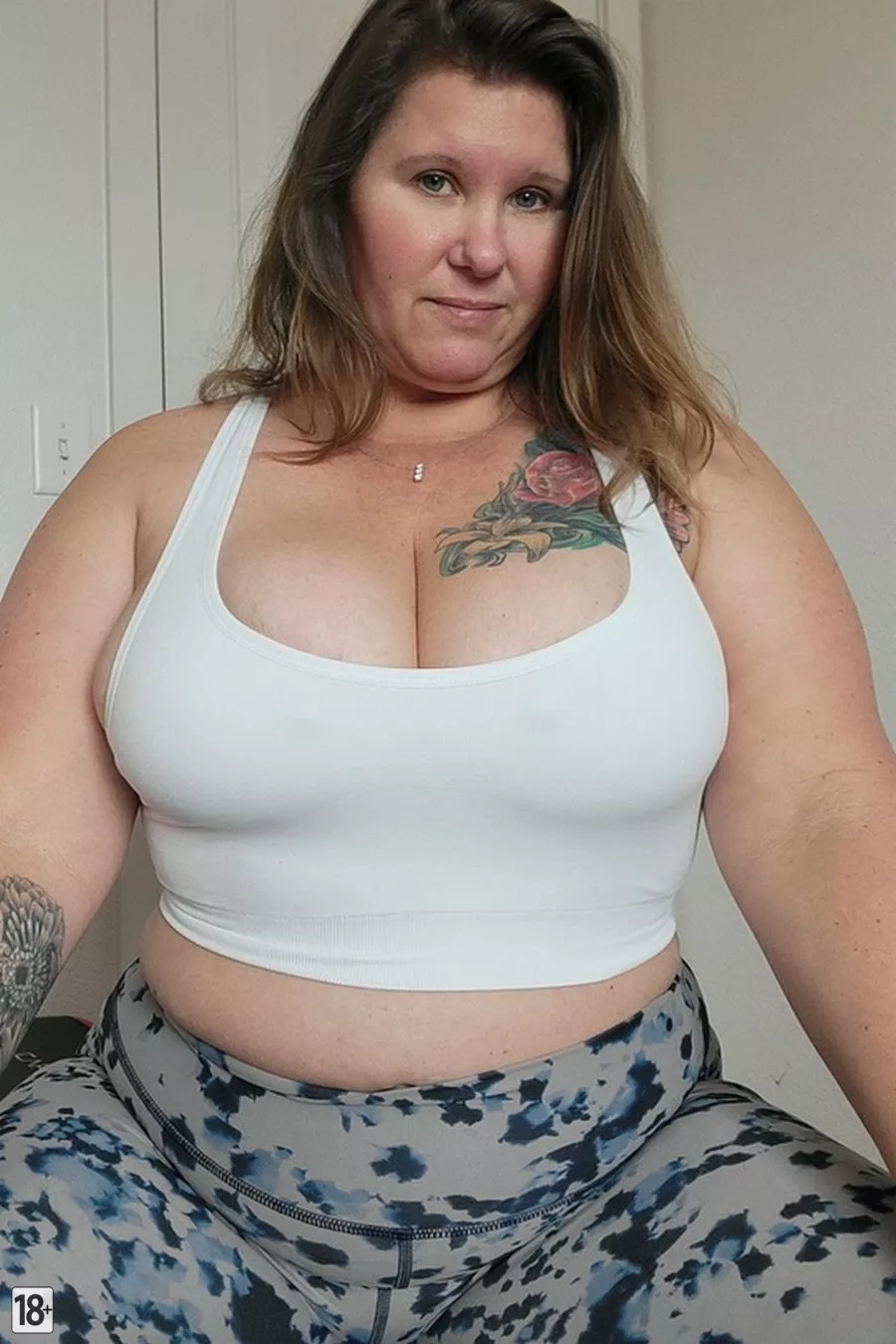 Зрелая толстушка с большими сиськами голая на тренировке