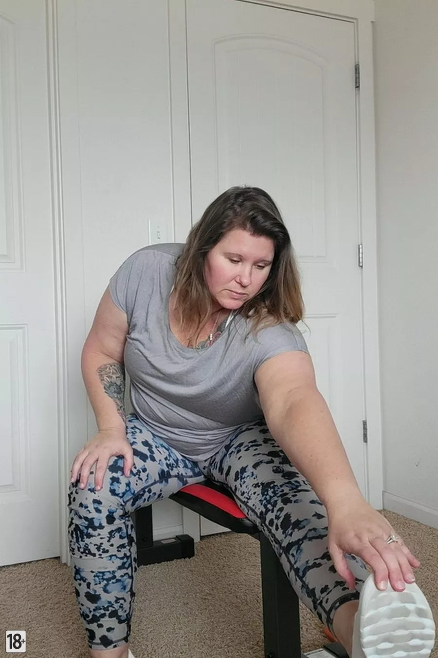 Фото сочной, толстой зрелой бабы с огромными сиськами и густо волосатой писькой, которая скинула все шмотки прямо на тренировке и теперь красуется в голом виде. Смотри, как эта пышка позирует, разводя ноги и виляя задами, чтоб ты аж возбудился от ее аппетитных форм и дикой похоти во время спорта. Не оторвешь глаз от ее мохнатой киски и упругих сисек, качающихся в поту – чистый кайф для любителей зрелых телес!