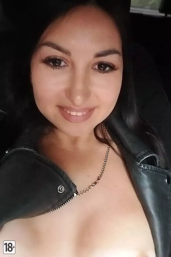 Замужняя красотка снимает в машине голые селфи своих сисек