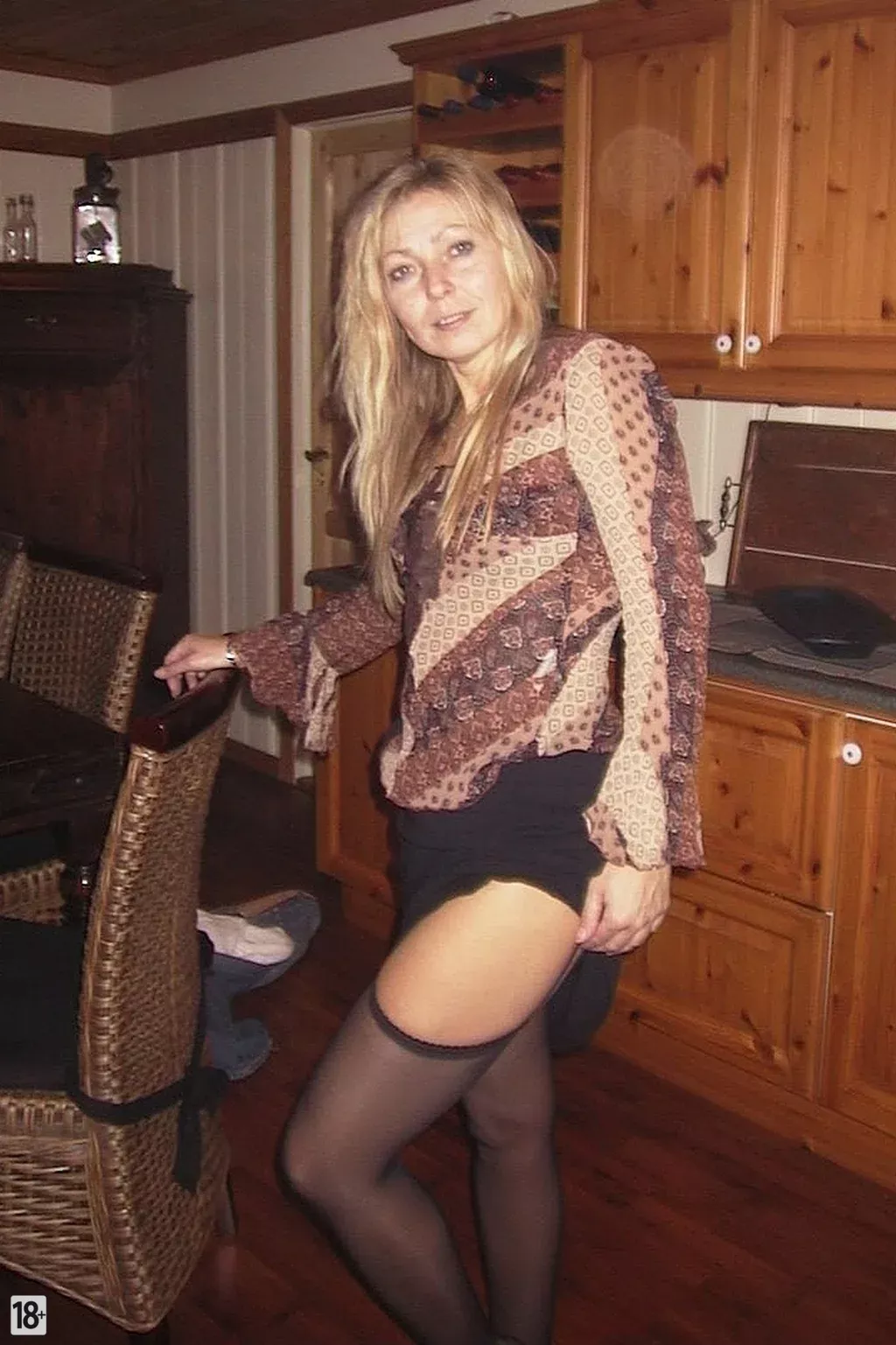 Сексуальная зрелая женщина в душе и эротичные позы в белье